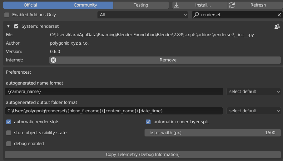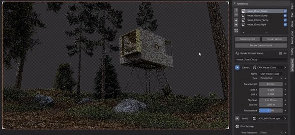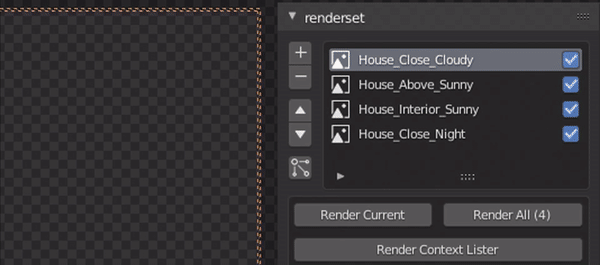 Renderset 是一个渲染管理插件,带有渲染上下文的概念,可将各种静止/动画渲染设置存储在一个 .blend 文件中,允许在它们之间快速切换以单独微调每个,然后逐个渲染和保存它们。它会记住您的相机设置,允许您批量渲染,并将您的渲染保存到它们的特定文件中。它还可以记住对象可见性,因此您可以快速迭代您的场景!从一个 .blend 文件创建多个渲染时,通常每个渲染都需要: